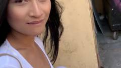 A linda morena Avery Black se exibe um pouco na rua e suga no carro. O boquete continua, quando o casal chega a casa