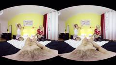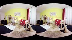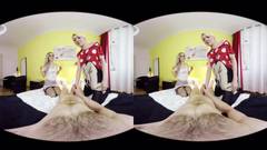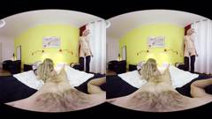 Essas duas garotas louras decidiram compartilhar o pinto desse cara e fazer um vídeo VR, então pegue seus óculos de realidade virtual e aproveite a cena.