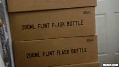 Essa jovem negra cheia de tesão está ansiosa para dar a si mesma o máximo de prazer possível quando é fodida com força por esse cara no armazém.
