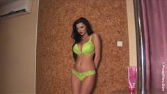 Morena extravagante com um busto generoso experimentando lingerie sexy e tirando fotos. Não perca seus lindos peitos!
