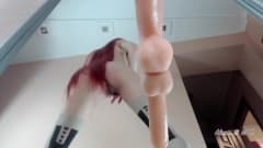 Ela colou o dildo no espelho para que ela possa desfrutar de montar enquanto ela está de pé gemendo e apreciando dentro dela