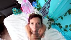 Gata jovem se veste de fada para transar e receber seu jato de porra