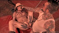Casal transexual de amantes de tatuagem em filmes pornôs