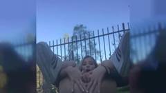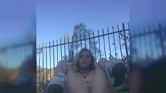 Ela está curtindo seu tempo no parque enquanto se masturba e abre o buraco da buceta e empurra o cu para fora