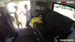 A jovem puta preta Carol Marf deixa um cara branco foder ela numa grande van. George Uhl maduro fode ela extremamente