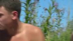 Esses gays se divertem muito fodendo a bunda em um campo e fazem questão de se masturbar juntos para que possam terminar e gozar juntos.