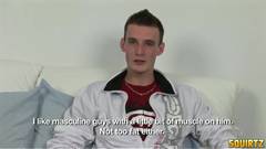 Observando Kevin com a sua pila nas mãos e se masturbando até que ele esteja pronto para se cobrir com seu próprio esperma