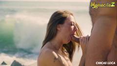 O sexy Ramon desfruta de um boquete da espetacular Sandra na praia. O mar molha o corpo gostoso da garota e o líquido de seu pau também.