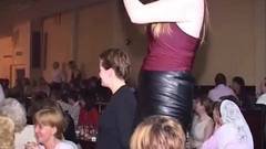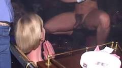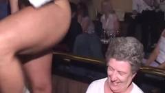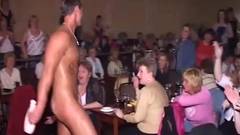 Mulheres empolgadas de todas as idades são o público desse jovem que dança completamente nu e dá em cima de todas as mulheres da boate.