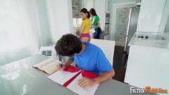 Esse garoto sortudo fode a madrasta e a sua meia-irmã