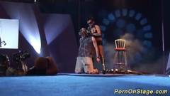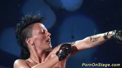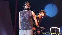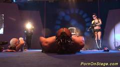 Essas fêmeas sujas de BDSM vão chicotear e foder bem o cara no palco. Um fetiche extremo que se torna realidade.