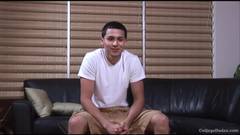 O cara chega ao casting, tira suas roupas e começa a polir seu pau duro, ele persiste e ejacula sobre si próprio, parece que desfruta dessa safadeza