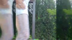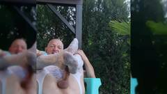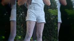 Velho com um fato de renda está ficando com seu pau duro lá fora