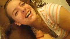 Amber Blank está trepando com um preto bem dotado que ela adora chupar. O câmera fica muito excitado e põe o pau pra ela chupar. Os dois gozam na cara dela
