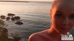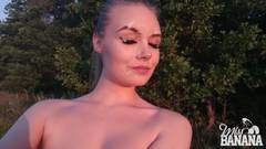 A bela e jovem loira Miss Banana tira um momento para chupar um pau à beira do rio!