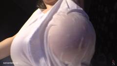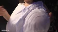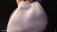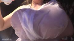 Os melhores peitos grandes, pertencem a Samanta Lily. Veja como ela molha seus peitos enormes e os acaricia de perto.