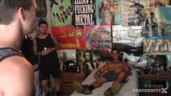 Esses caras gostosos fodem intensamente com seus amigos em um vídeo quente! Veja-os envolvidos em um gangbang!