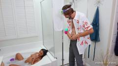 Sommer Isabella se dedilha na banheira e depois cuida de um homem chupando seu pau. Encharcada, ela tem sua buceta lambida.