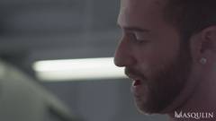 O gostoso peludo quer ser famoso e oferece sua bunda para o gay bonito que o entrevista para o teste.