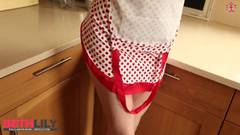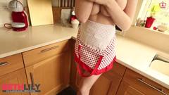 Beth Lily faz o papel de uma cozinheira nua na cozinha. Ela exibe seus peitos grandes e deixa você excitado.