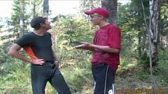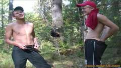 Os dois amigos começam uma briga, se cansam e tiram as pilas para fazer uma punheta e ejaculam ao mesmo tempo.