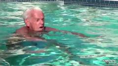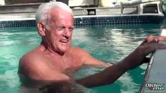 Neste vídeo, um homem velho nadando na piscina ficará excitado como um inferno e voltará para foder seu velho amante.