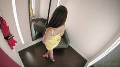 Essa bela jovem estrela pornô da Europa Oriental, Little Caprice, se desnuda para se deleitar em um provador com um dildo no rabo!