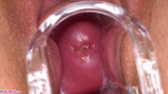 Essa amadora coloca um afastador em sua buceta para nos mostrar o que há lá dentro e aproveita a oportunidade para vibrar seu clitóris.