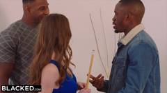 Hazel Moore é duplamente penetrada por duas grandes picas pretas. A jovem garota gosta de ser mexida como um pedaço de carne.