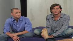Jarett tem um fetiche com os pés. Ele fica excitado e lambe Logan e chupa seu pinto em 69 para ficar duro e fodê-lo.