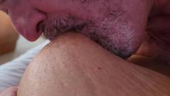 Velhote apaixonado pelos peitos e mamilos da BBW
