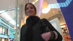Esta é uma garota muito bonita e sexy que gosta de chupar paus duros em banheiros públicos. Ela é fodida por dois caras cheios de tesão!