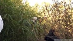 Essa travesti é levada por seu cliente para uma foda no meio do mato. Dois rapazes os seguem e ficam olhando esquanto eles se chupam e fazem sexo anal!