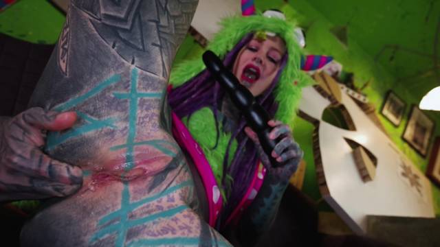 A bela tatuada da Anuskatzz em Cosplay se masturbando brutalmente