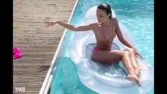 Sapphira está balançando ao redor da piscina em uma bóia. Ela nos deixará invejosos e nós ficaremos olhando para ela enquanto ela bate siririca