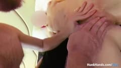 Ele faz uma massagem nas costas e depois se concentra na vagina dela até fazê-la esguichar na cama do hotel. Esse cara tem uns dedos mágicos!