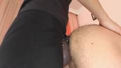 Essa morena domina e maltrata esse cara, ajoelhando é submetido a pontapés Então ela coloca uma grande alça e o sodomiza