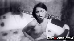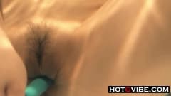 Essa japonesa gostosa vai para a banheira para relaxar. Ela leva seu vibrador com cabeça grossa para se acariciar e penetrar sua xoxota gulosa!