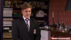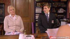 O aluno se comporta mal nas aulas e é levado para ser punido pela diretora. Ele é viciado em sexo e a diretora vai se aproveitar do seu pau gostoso!