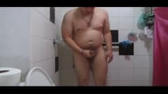 Esse gordinho fofo esta a tomar banho e fica empolgado assim que vai bater uma punheta para libertar a sua carga de porra do dia