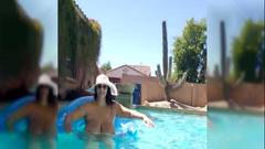 Garota mocinha madura e nua na piscina exibindo suas bubbies