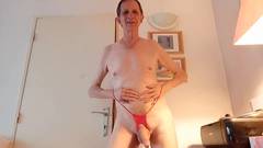 Esse velho é muito safado. Ele liga sua câmera para se exibir usando apenas uma tanguinha e com a rola de fora.