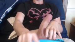 Esse jovem loiro tem um pau gigante e ele adora que todos vejam, etão ele se exibe na webcam batendo uma punheta generosa até esguichar!
