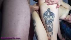 Sua gatinha está dilatando até a morte com as penetrações profundas que seu homem está lhe dando, ele está puxando o cabelo dela e a demolindo em pé