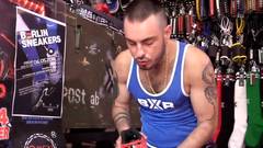 Os fetichistas de dois pés ficam excitados na loja de esportes ao cheirar os sapatos e fodem ali mesmo no chão.
