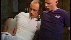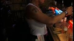 Alguns caras durões têm um confronto em um bar gay. O perdedor é fodido na mesa e todos gozam em cima dele.