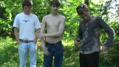 Esses três jovens gays estão na natureza aproveitando o tempo livre para se masturbarem juntos ao ar livre.