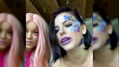 Adriana começa sozinha no jardim, enfiando um vibrador na bunda, depois é acompanhada por sua namorada, que enfia o vibrador na bunda dela.
