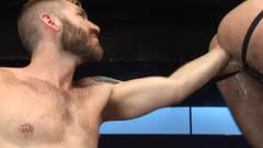 Mijar, cuspir e fisting anal gay com dois tarados excitados