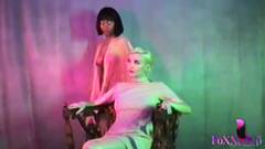 Essa linda garota preta com um estilo vintage acariciará a loira, lamberá sua buceta e desfrutará de seu corpo suntuoso.
